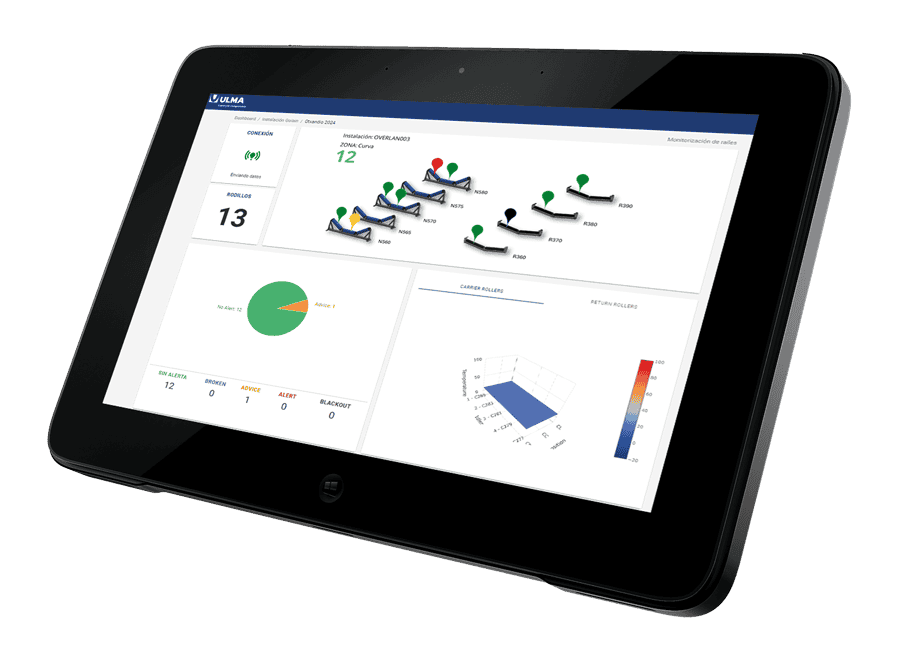 Detecta anomalías térmicas y de velocidad de giro de los rodillos que pueden provocar fallos críticos en el conveyor.